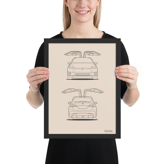 Tesla Model X Falcon Wings 12 in. x 16 in. Framed Poster (2 Frame Colors Available)